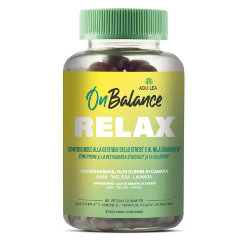 Aquilea On Balance Relax: una combinazione sinergica di Ashwagandha Sensoril, GABA, melissa e lavanda. Aiuta il rilassamento e la gestione dello stress.