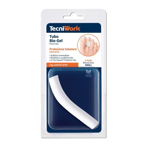 Protezione tubolare per dita dei piedi in Tecniwork Polymer Gel. Protegge le dita da compressioni e sfregamenti. Previene e dona sollievo dal dolore in caso di callosità, calli dorsali e occhi di pernice, senza creare ingombro. Ritagliabile.