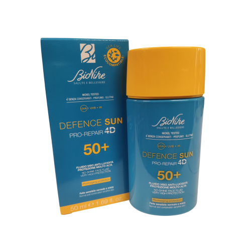 Bionike Defence Sun Fluido Viso Anti-Lucidità SPF 50+ è un solare fluido per il viso dalla texture ultra-leggera e non untuosa, specificamente formulato per pelli normali e miste. Grazie alla sua formula avanzata, offre una protezione ad ampio spettro UVA-UVB-IR, contrastando i danni causati dai radicali liberi e proteggendo la pelle dagli effetti dannosi del sole.