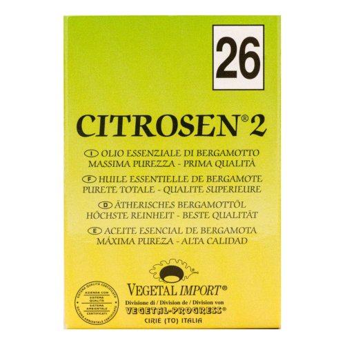 Vegetal Progress Citrosen 2 è un olio essenziale di Bergamotto puro, ideale per diversi usi. Può essere impiegato in aromaterapia, come delicato profumo per alleviare lo stress, o per eseguire gargarismi. Per ottenere 10 ml di questo olio essenziale sono necessari 250 kg di bucce di bergamotto.