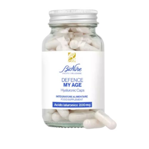 Descrizione breve del prodotto BioNike Defence My Age Hyaluronic Caps è un integratore alimentare di ultima generazione studiato per contrastare i segni del tempo dall'interno, promuovendo la compattezza cutanea e riducendo visibilmente la profondità delle rughe. Grazie a una formula bilanciata a base di acido ialuronico a range completo di peso molecolare e vitamine essenziali, rappresenta il supporto ideale per la pelle matura che necessita di ritrovare turgore e vitalità.