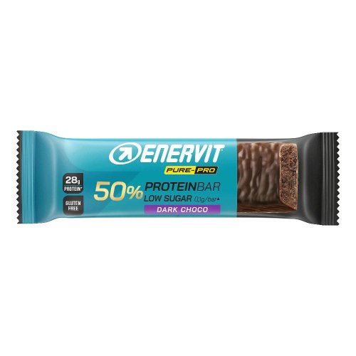 Descrizione Barretta proteica ricoperta di cioccolato fondente con edulcorante.