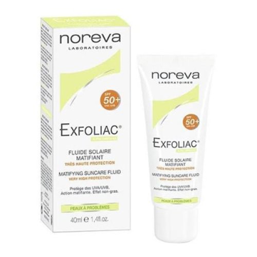 Formulato appositamente per le pelli grasse con imperfezioni, Exfoliac Fluido solare opacizzante SPF 50+ garantisce una protezione ottimale contro i raggi UVA/UVB.