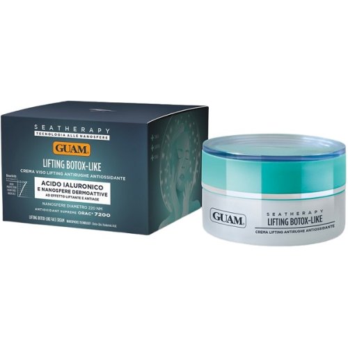 Crema viso lifting botox-like è un trattamento ad effetto lifting e anti-age che si avvale della tecnologia alle nanosfere, che permette di veicolare i principi attivi nello strato più profondo del derma massimizzandone l'efficacia, per ottenere risultati diretti e straordinari. Formulata con nanosfere dermoattive che agiscono in modo mirato nel derma favorendo un'azione liftante immediata che porta alla distensione delle, piccole rughe, per un viso dall'aspetto fresco e riposato. Contemporaneamente l'azione sinergica dell'acido ialuronico a basso peso molecolare e delle nanosfere anti- age favorisce il ripristino di tono ed elasticità cutanea. L'estratto bioactivity di alghe marine guam, dal forte potere antiossidante, protegge la pelle dall'azione dei radicali liberi. Con il tempo la pelle del viso appare visibilmente più luminosa.