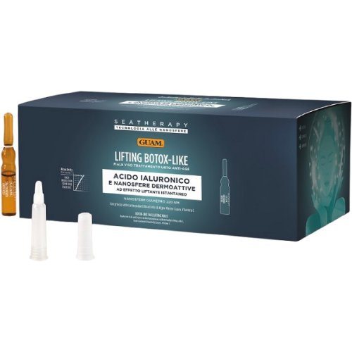 Il trattamento lifting botox-like si avvale della tecnologia alle nanosfere che permette di veicolare i principi attivi nello strato più profondo del derma, massimizzandone l'efficacia per ottenere risultati diretti. Il trattamento seatherapy lifting botox-like contiene acido ialuronico a basso peso molecolare e nanosfere dermoattive i cui peptidi arrivano esattamente dove servono per una mirata azione liftante immediata. Tra i principi attivi del prodotto sono stati inseriti, per un forte potere antiossidante contro i radicali liberi, l'estratto bioactivity di alghe marine guam e la vitamina C. La formulazione del siero così risultante è ricca di principi attivi e senza acqua aggiunta. Questo trattamento ha la duplice funzione di liftare la pelle e di promuoverne in profondità l'elasticità e il tono, con un effetto anti-età immediato e il risultato di ritrovare pelle più distesa, attenuazione delle rughe, nuova luminosità.