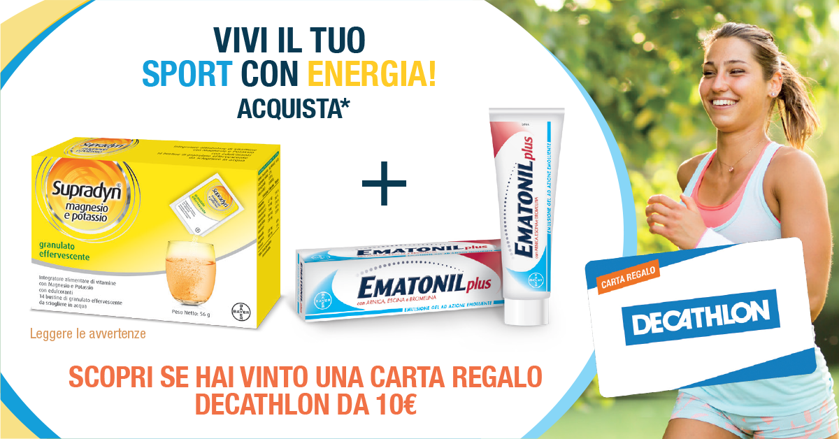 In questa sezione troverai due prodotti in super promo, che se acquistati insieme ti daranno la possibilità di ricevere due super regali. Riceverai nel tuo pacco un premio garantito a sorpresa e seguendo le nostre indicazioni sui social potrai ricevere una card Decathlon del valore di 10€!