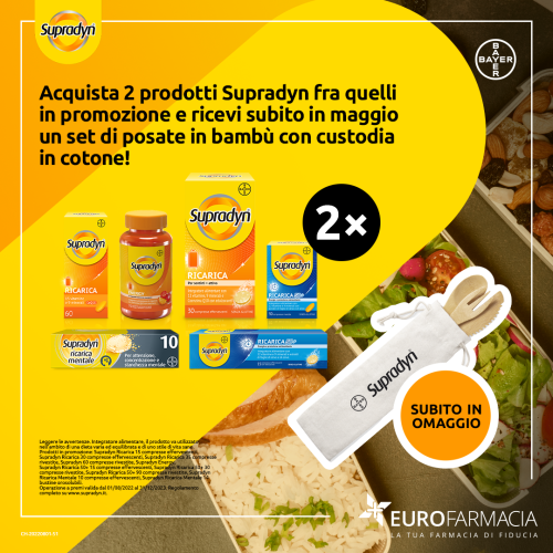 Le immagini dei prodotti presenti su questo sito hanno valore puramente illustrativo e potrebbero non corrispondere in modo esatto a forma, colore, testo o confezione effettivi. Poiché l’aggiornamento in tempo reale di tutti i contenuti può presentare difficoltà o margini di errore, invitiamo i nostri clienti a contattare il Servizio Clienti per qualsiasi dubbio o richiesta di conferma. L’identificazione ufficiale di ciascun prodotto avviene sempre tramite il codice MINSAN (Ministero della Salute).