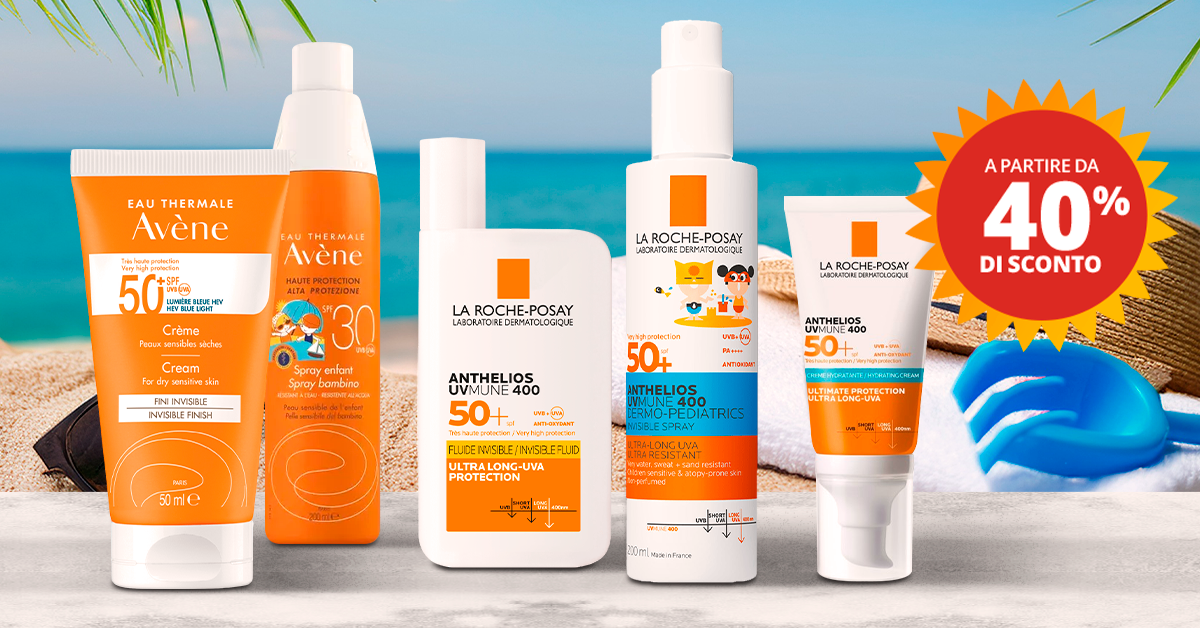 Scegli qualità dermatologica e preparati all'estate con il massimo della protezione: scopri i migliori solari Avène e La Roche Posay, oggi extra scontati del 40%.
